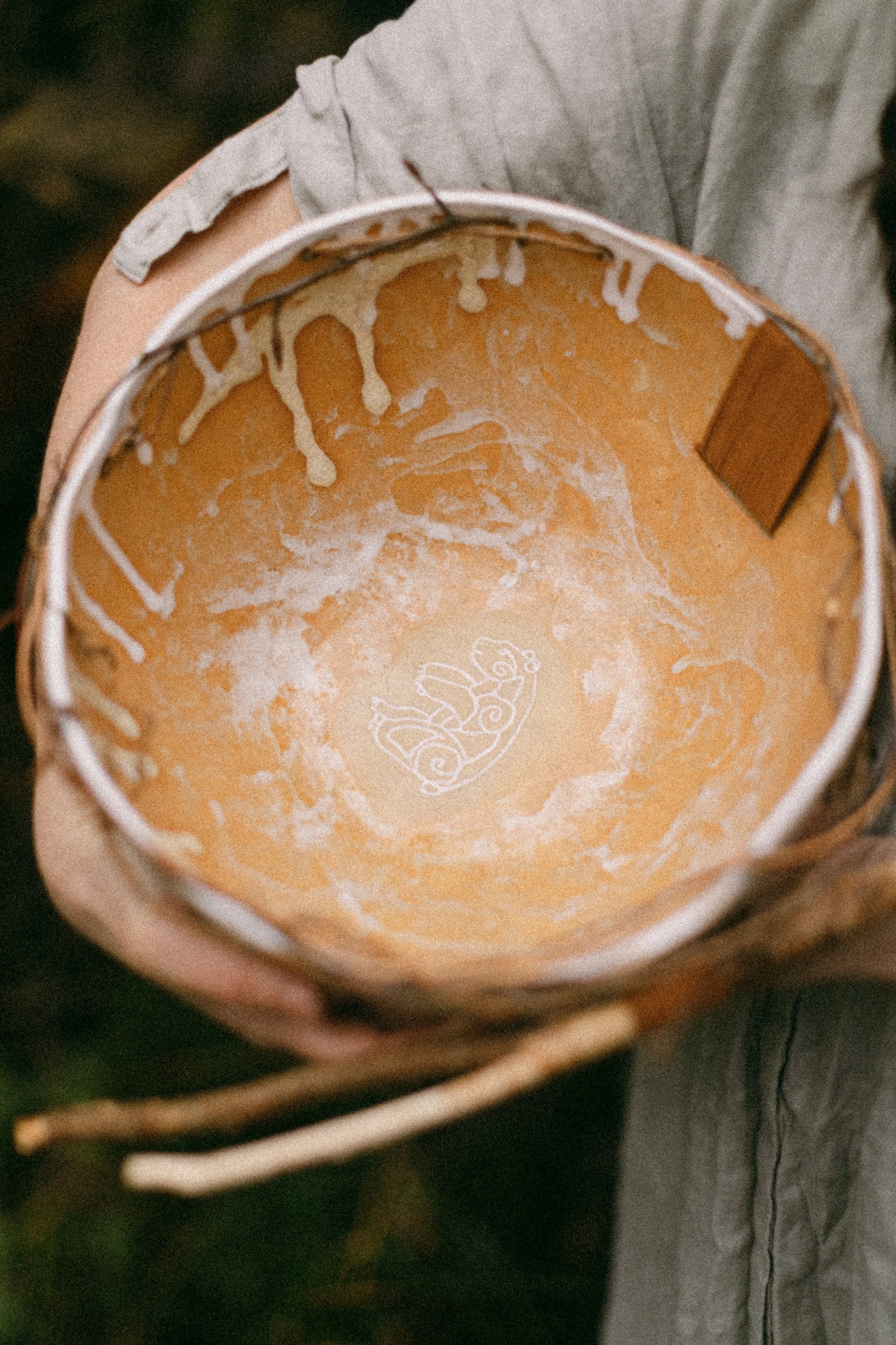 Woven with raw earth, blessed with mountain water, solidified by the cleansing sacred fire, dried in the fragrant air of the surrounding bogs and forests, grounded with fallen branches or roots and adorned with hand-bound leather.